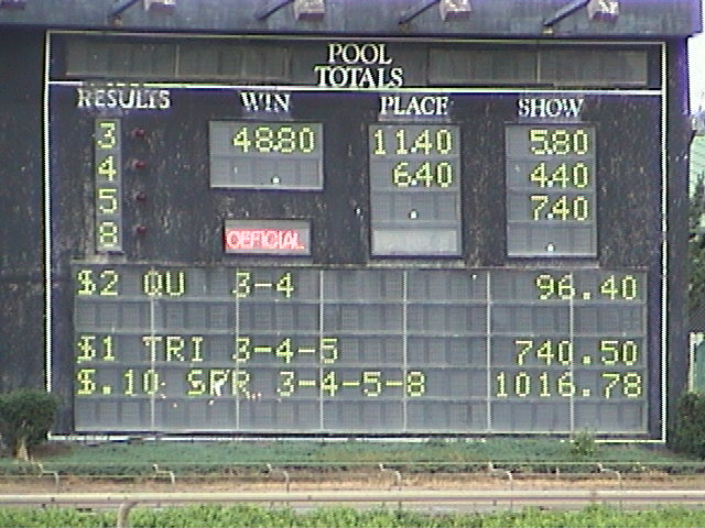 Pre race track odds were as follows;